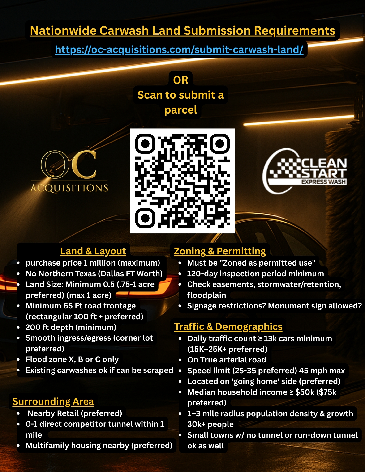 Submit land for carwashes